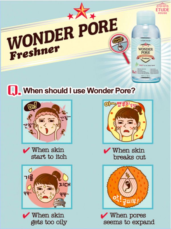 Top Etude House Wonder Pore Images Official website of etude for global customers! Learn more with skincarisma today. No wonder it's popular in toners and oily skin formulas. Try using etude house wonder pore products. This freshner balances ph levels, makes skin pure like baby skin, and prevents skin troubles caused by ph imbalance. You can use mist from wonder pore freshner put proper amount of mist or toner in the empty bottle.