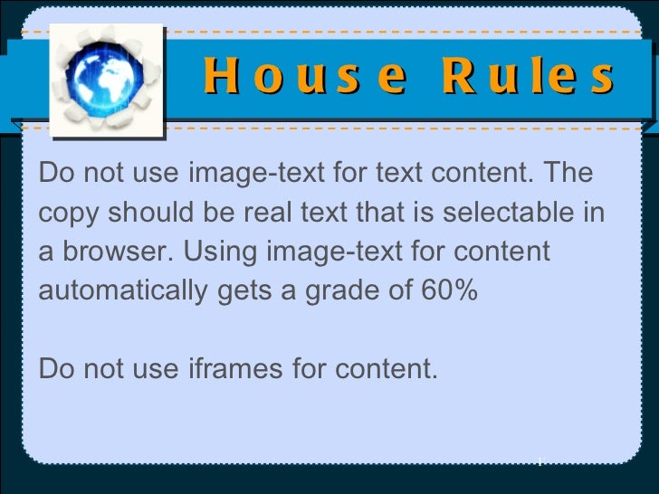 House Rules For Seminar We will publish all comments and contributions on the website users who break our house rules will be blocked from the website. One way to process the seminar dynamic is to assign a student to map the seminar prior to beginning. Respect each other's contributions in seminars: Cornell university is committed to the overall educational and personal development of its students.